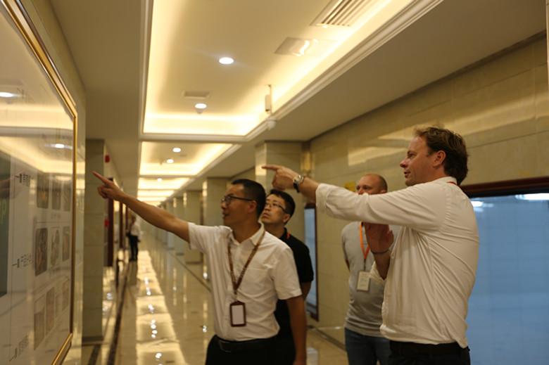 來到湘佳食品產業園,Olivier一行參觀了湘佳文化長廊、流水生產線、質控監測中心。湘佳食品產業園副總經理孫元盛全程陪同,熱情地向客人們介紹了現代化屠宰冷鏈生產線的相關情況。