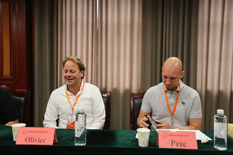 9月20日上午,荷蘭梅恩公司亞太區總監Olivier、產品經理Pete、業務經理潘偉奇一行專程前來湘佳牧業參觀訪問。