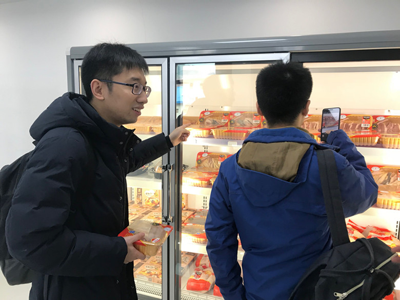 湘佳生鮮家禽產(chǎn)品陳列室,茶園雞、橘園雞、青腳雞、土黑雞、黃油母雞、麻雞、石門土雞等各種雞肉分割品,老人雞肉、兒童雞肉、孕產(chǎn)婦雞肉以及各種雞肉調(diào)理品琳瑯滿目,兩位年輕人逐一拿出一件件陳列品,仔細(xì)辨認(rèn),并從包裝設(shè)計、產(chǎn)品特性、養(yǎng)殖日齡、產(chǎn)品說明等方面提出了許多合理化建議,并希望湘佳生鮮家禽要更多地順應(yīng)“新零售”的趨勢,不斷抓住消費者的購買“痛點”。
