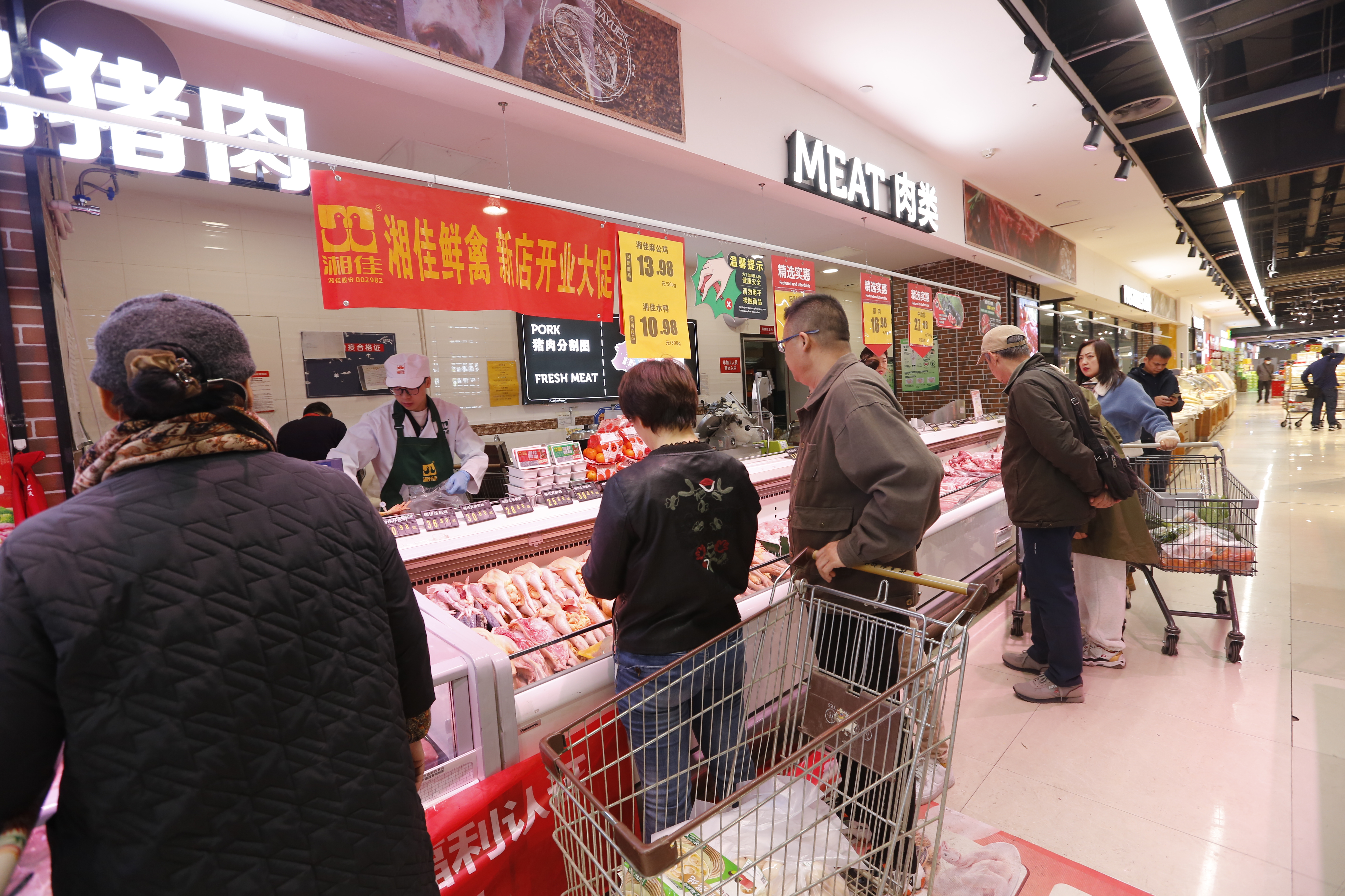 11月4日,在內蒙古呼和浩特的家家悅、北京華聯等8家大型連鎖超市內,湘佳股份鮮禽專區正式開賣。首次進駐內蒙古市場,湘佳這個品牌引起了廣大市民的好奇和圍觀,不斷有市民前來詢問湘佳雞的口感和食用方式,氛圍火爆。